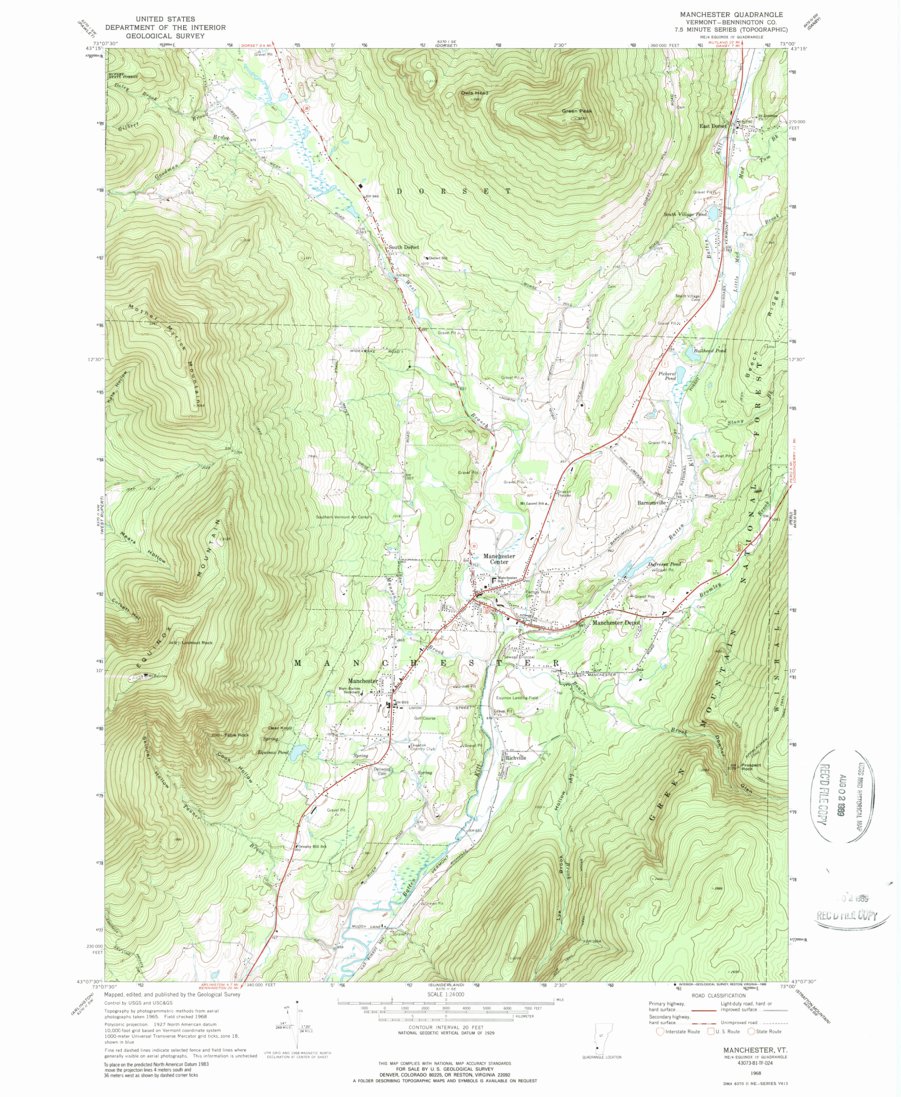Manchester, VT (1968, 24000 Scale) Map by United States Geological