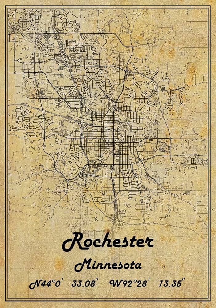 Kaisrlse Rochester Minnesota USA Vintage Map Poster Rochester